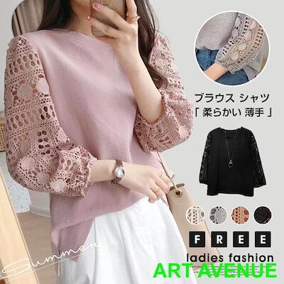 【新品追加】ブラウス シャツ レディース レース フレア袖 七分袖ブラウス おしゃれ クルーネック シフォン 柔らかい 薄手 オフィス