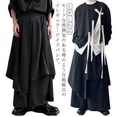 フレアパンツ 袴パンツ レディース ロング丈 ワイドパンツ スカートパンツ はかまパンツ ゴムウエスト スカート風 薄手 メンズ 大きいサイズ ストリート モード系 v系 タック入り メン