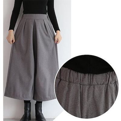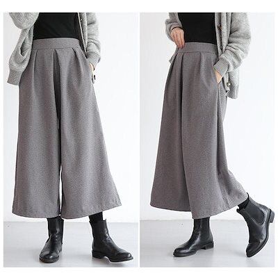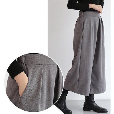 ガウチョパンツ レディース ワイドパンツ フレアパンツ スカーチョ 秋冬 厚手 体型カバー ボトムス 美脚 ズボン カジュアル 無地 きれいめ 九分丈