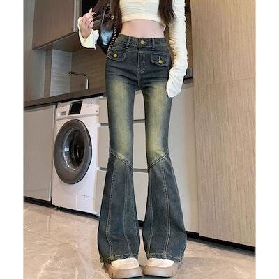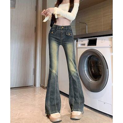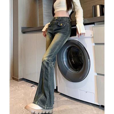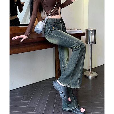 デニムパンツ レディース ジーンズ レトロ セミフレアデニムパンツレディース