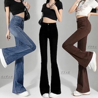 デニムパンツ レディース ジーンズ フレアデニムパンツ セミフレアパンツ韓国デニムパンツ
