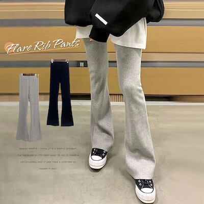 フレアパンツ レディース フレアーパンツ ブーツカット リブレギンス ブーツカットパンツ フレア リブ レギンス パンツ リブパンツ カジュアル レイヤード 大人 可愛い ウエストゴム ズボン