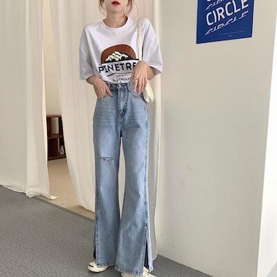 デニムパンツ フレアパンツ スリット デニムパンツ ジーンズ レディース Gパン ズボン ベルボトム ロングパンツ