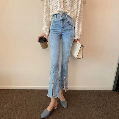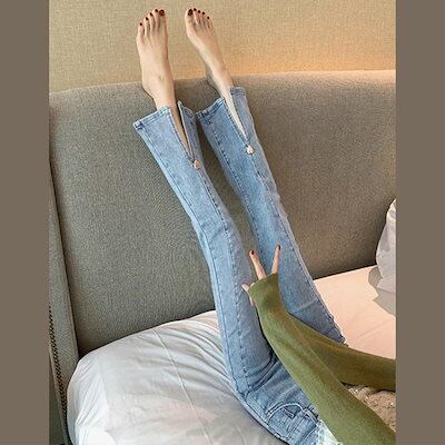 デニムパンツ スリットデニムフレアパンツレディース韓国