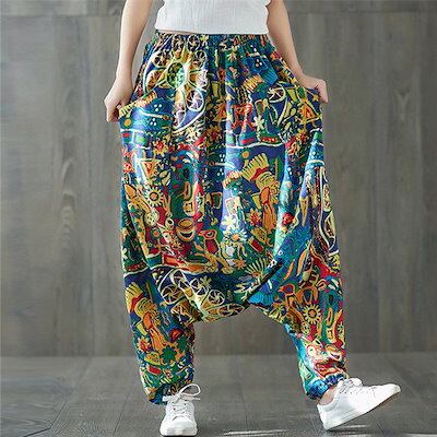 サルエルパンツ レディース エスニック ダンス サルエル アラジンパンツ 総柄 大人 ジム ヨガ 大