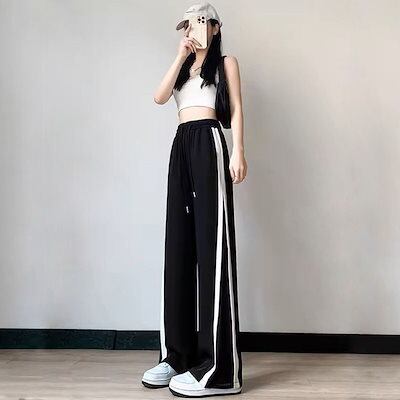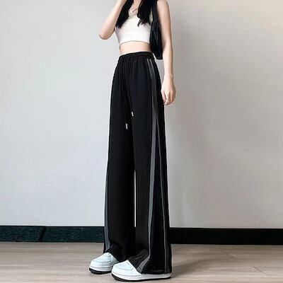 氷糸広脚ズボン女2024新夏薄金ゆるい高腰黒ストレート運動カジュアルズボン小柄