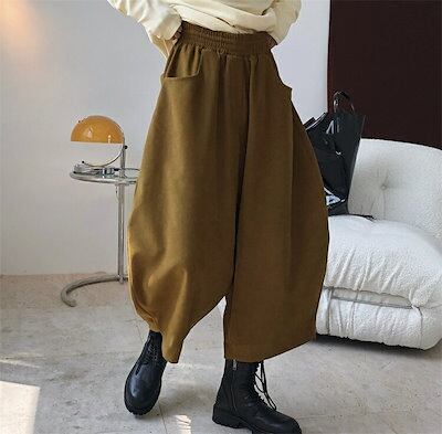 バルーンパンツレディース秋冬ワイドパンツロングウエストゴムコクーンパンツポケット付き脚パンツボトムスゆったりかわいい9分丈大きいサイズ大人黒ブラウンカジュアルズボン無地着痩せ403050