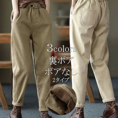 テーパードパンツパンツレディースボトムス綿コットン裏起毛体型カバーフリース大きいサイズウエストゴム楽ちんおしゃれゆったり