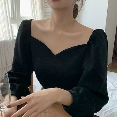 レディース 上着 シャツ ブラウス トップス Tシャツ スイートハートネック ハートシェイプドネック ベーシック コットン 角襟 体型カバー 日常着 お洒落 肌見せ 普段着 着痩せ 夏 春 秋 冬カジ