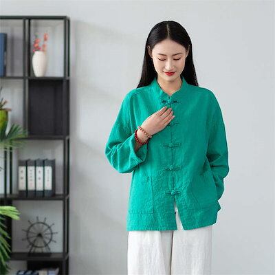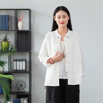 シャツ レディース おしゃれ ブラウス シャツブラウス 長袖 リネンシャツ リネン トップス ロングシャツ カーディガン レディースシャツ 大人 チャイナボダン 立ち襟 シンプル カジュアル ナチュラ