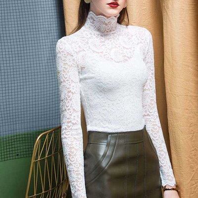 レース ブラウス レディース ハイネック ブラウス 長袖 ブラウス レース トップス 裏ボア 結婚式 お呼ばれ セクシー フリルブラウス 立ち襟 レース インナー プルオーバー 長袖 ブラウス パーテ