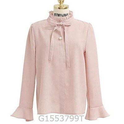 リボンブラウスレディース襟フリル長袖おしゃれ白ピンク可愛いかわいいリボンタイシャツ秋冬春立ち襟スタンドカラー春服演奏会フォーマル