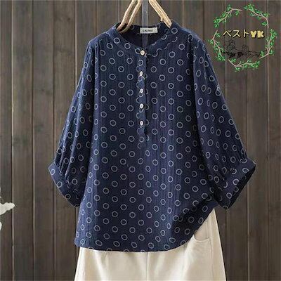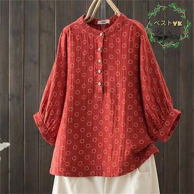 ガーゼ シャツ ガーゼシャツ レディース ブラウス 七分袖 スタンドカラー シャツ 春夏 秋 立ち襟 ゆったり 落ち肩 体型カバー 綿上品 着回し 柔らかい 可愛い