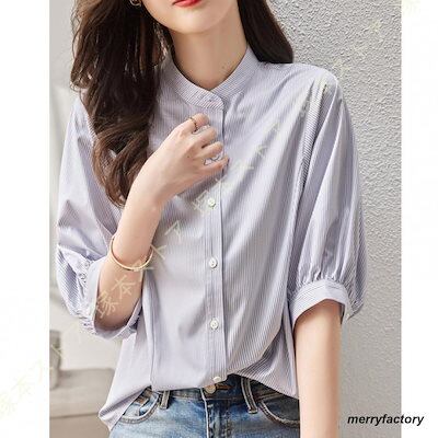 新品大人気 ブラウス 秋 夏 夏服 春 レディース 半袖 ドレープ ボタン 襟付き ポリエステル 立ち襟 大きいサイズ デザイン オフィスカジュアル カフス ギャザー ゆったり