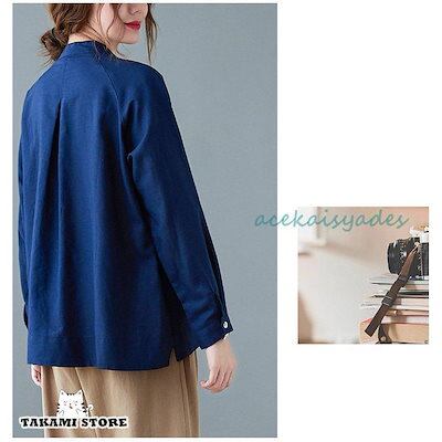 新?入荷続々 シャツ レディース トップス 春 秋 長袖 ブラウス 綿混 コットン 無地 ゆったり 立ち襟 大きいサイズ ゆったりシャツ おしゃれ