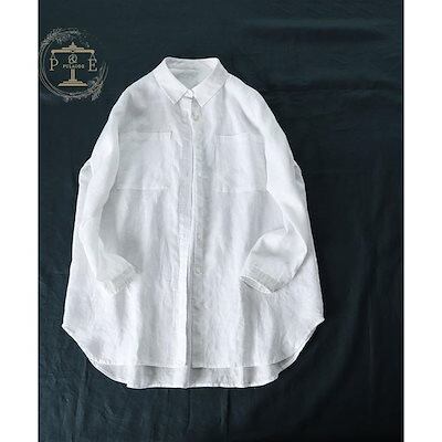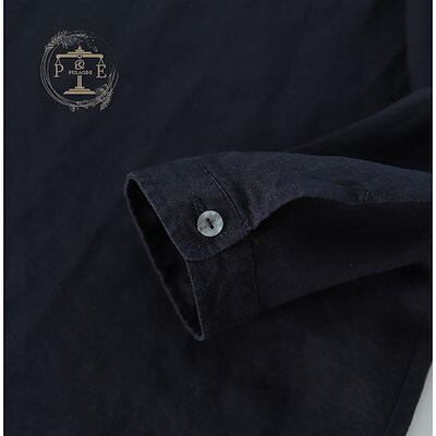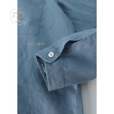 シャツ 長袖 ブラウス リネン 立ち襟 レディース シャツブラウス 前開き 長袖シャツ ボタン留め ポケット有り 体型カバー トップス ゆったり