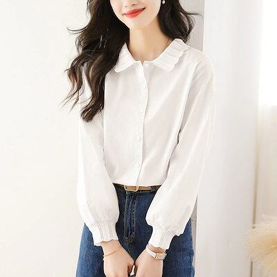 レースレース襟シャツ2024春服コットンシャツ 韓国ファッション 今っぽシアーシャツ 長袖 ブラウス レディース オフィス シャツ カーディガン