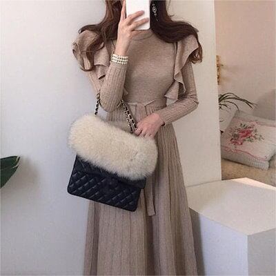 秋冬 新作 おしゃれ ニットワンピース レディースワンピース 気質 高級感 丸ネック セーター ロングワンピース トップス 韓国ファッション