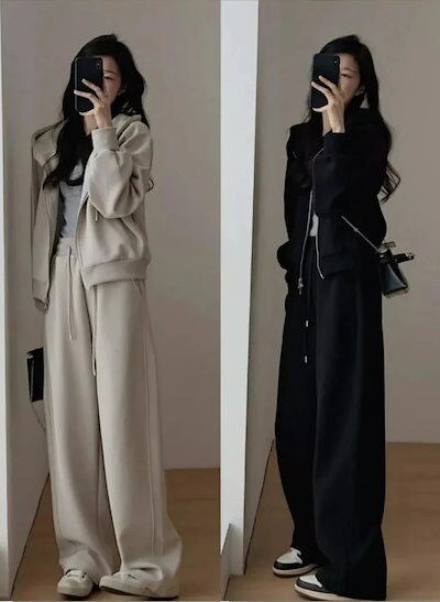 セットアップ2点セット トップス+ズボン 大きいサイズパーカー 150kg スウェット ア ップ 長袖フード付きアウター無地 スウェットパンツ韓国ファッション レディーストレーニングウェアスポーツウェ