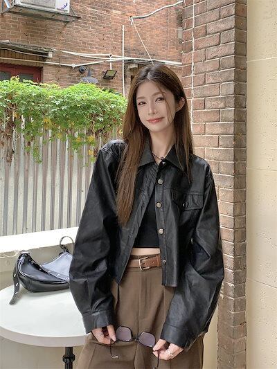 ライダースジャケット秋アウターショートpu レザージャケット 韓国ファッション 流行り 百掛け トップス 革ジャンレディース クラシックコートカーディガン 秋ジャケット