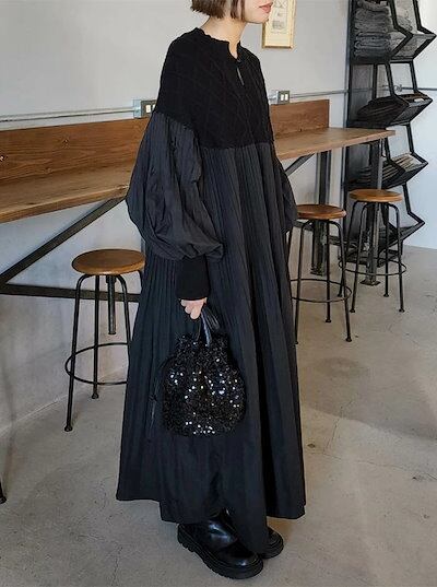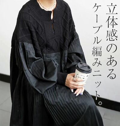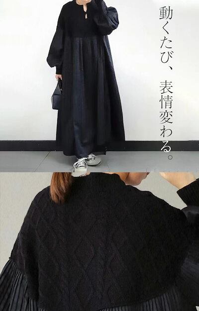 ワンピース レディース 秋冬 長袖 切り替えワンピース きれいめ 異素材 切り替え ニット ドッキングワンピース カジュアル マキシワンピース マキシ ロングワンピース プリーツ おしゃれ