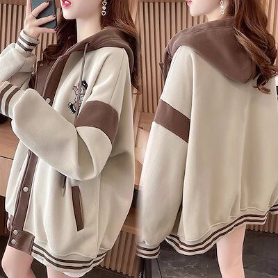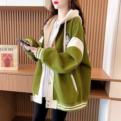 韓国 パーカー フード付き カーディガン スウェット レディース ルーズ ジャケット