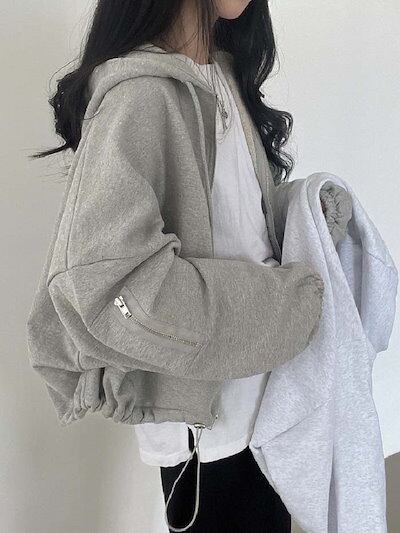 ジップアップパーカー レディース 秋 春 パーカー ジャケット スウエット フード付き パーカー コート ショート丈 コート トップス 大人 軽量 シンプル 無地 普段着 着回し力 着痩せ 体型カ