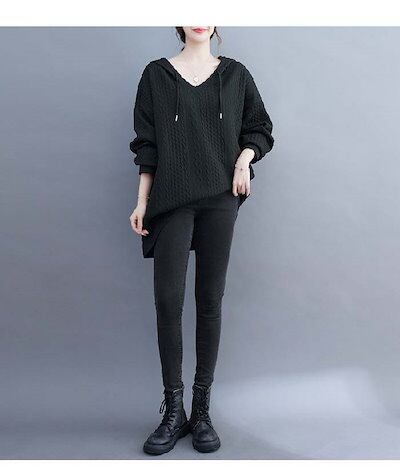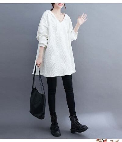 パーカー レディース 長袖 春 秋 プルオーバー フード付き tシャツ トップス チュニック 無地 シンプル ゆったり カジュアル 大きいサイズ ゆるっと ビッグシルエット 幅広カフス 着?せ お洒