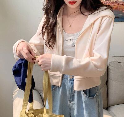 2024秋冬服 スウェット ストライプ柄 フード付き ゆったり ファスナー デザイン 長袖 トップス
