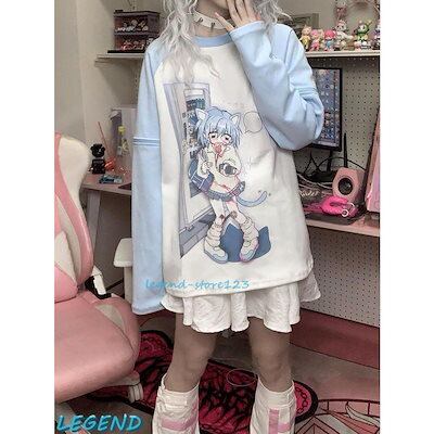トレーナー 地雷系 レディース 可愛い 2way プリント 取り外し可能 長袖 Y2K パーカー ゆったり 体型カバー 原宿系 おしゃれおすすめ商品