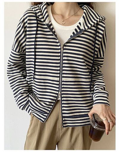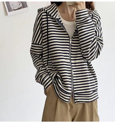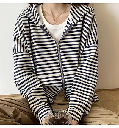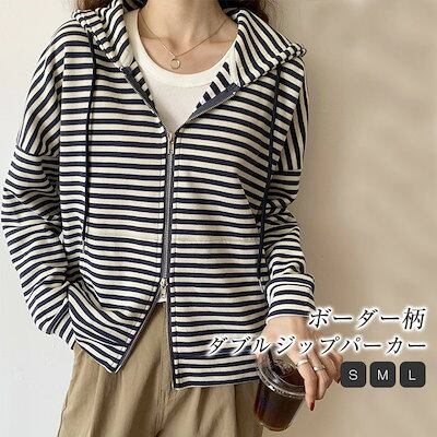 パーカー ダブルジップパーカー レディース トップス スウェット ジップアップ 羽織り フード付き ボーダー柄 シンプル 長袖 大きいサイズ ゆったり カジュアル コーデ シンプル 春 秋 キレイめ
