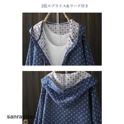 パーカー フード付き 秋 配色 レディース 羽織 トップス 羽織り 長袖 総柄 綿 コットン シャツパーカー 軽い 薄手 ライトコート ジャケット アウター
