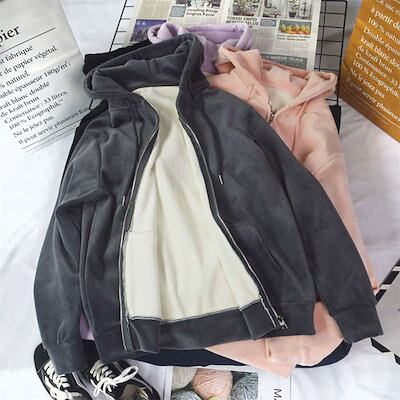 裏起毛 パーカー レディース 厚手 ボア 裏ボア 秋冬 アウター ベルベット フルジップパーカー ジップパーカー フーディー 暖か 防風 秋 冬 大きめ 長袖 ポケット付き スウェット フードパーカー