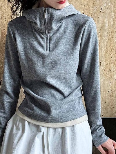 パーカー 薄手 長袖 ハーフジップ スウェット プルオーバー フード付き スウェットパーカー カットソー トップス トレーナー フーディー 無地 オシャレ お洒落 可愛い カジュアル レディースファッ