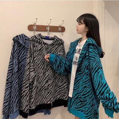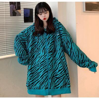 パーカー レディース ゼブラ柄 フード付き 長袖 切り替え ゆったり ラグランスリーブ トップス