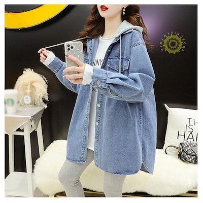 デニムシャツ パーカー レディース フード付き トップス 羽織 スウェット UVカット 長袖 紫外線 冷房対策 体型カバー 春 夏 秋 おしゃれ
