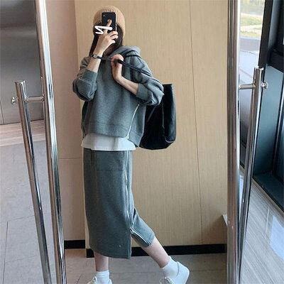 セットアップ 上下セット パーカー レディース スカートスーツ トレーナー + スカート 2点セット パーカーセットアップ 春秋 大きいサイズ 長袖 スカート