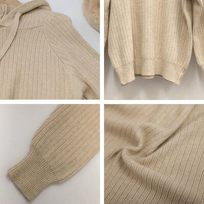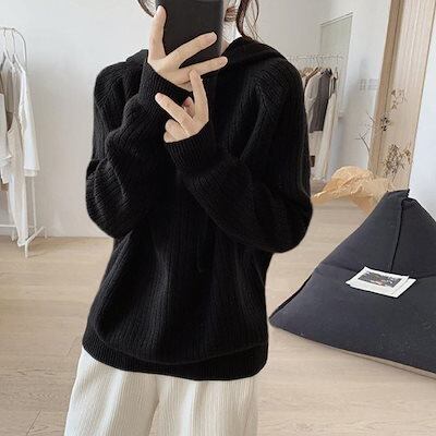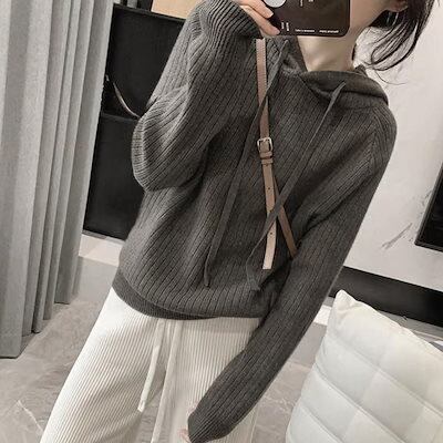リブニットパーカーレディース韓国トップス