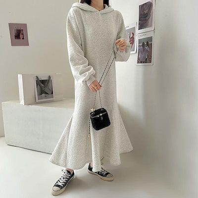 裏起毛 ワンピース パーカーワンピース レディース スウェットワンピース パーカー スウェット フード付き ロングワンピース マーメイドワンピース フレア aラ