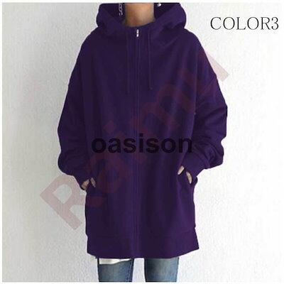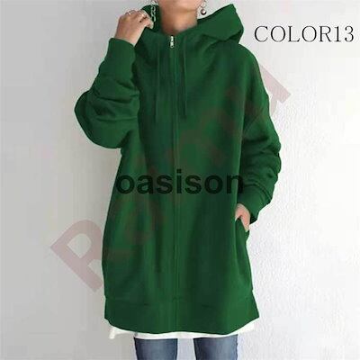 新作登場 上品 パーカー 秋冬 コート アウター ファスナー付き 無地 フード トップス レディース 裏起毛 長袖 ロング丈 体型カバー 防寒 部屋着 ゆったり