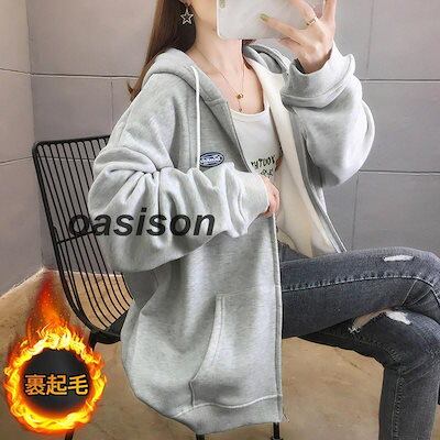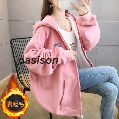 高級な質感 パーカー レディース 前開き ゆったり トップス アウター 上品 秋冬 裏ボア 暖かい コート 裏起毛 ボアパーカー フード付き スウェット