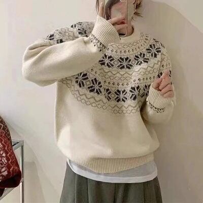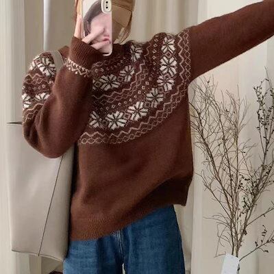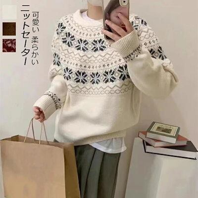 ニットセーター ニット トップス レディース 秋冬 セーター ニットセーター 長袖 花柄 クルーネック 秋 冬 ニットソー プルオーバー オーバーサイズ アウター 大きいサイズ 配色 セーター ドルマ