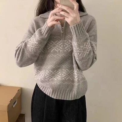 ニット セーター レディース 秋 冬 ニットパーカー ハーフジップ フレンチスリーブ リブニット 長袖 ゆるめ ビッグ襟 ニットセーター セーラーカラー 秋冬 柄 通勤 通学 ニットトップス 春 体型