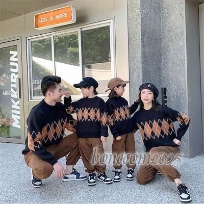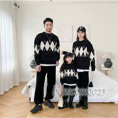 大きいサイズ パパ 娘 秋冬 親子ペアルック セーター トップス ニット カップル お揃い 上品 レディース 息子 暖かい 長袖 丸襟 ママ ストレッチ セーター