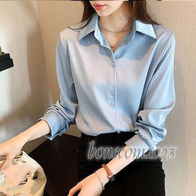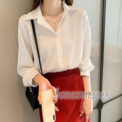 襟付き とろみ きれいめ 春夏 大きいサイズ 秋冬 おしゃれ 前開き ボタン オフィス シワになりにくい ブラウス レディース トップス シャツ 長袖 シフォン