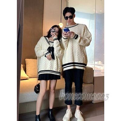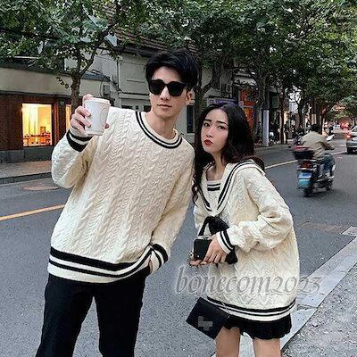 長袖 レジャーセーター セーラー風 上品 おしゃれ 秋冬 カップル 通勤 お揃い 親友 プレゼント ニット クルーネック メンズ レディース ペアルック ペアセーター