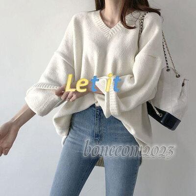 トップス ニット 韓国風 体型カバー ネック レディース セーター 秋冬 ゆったり 長袖
