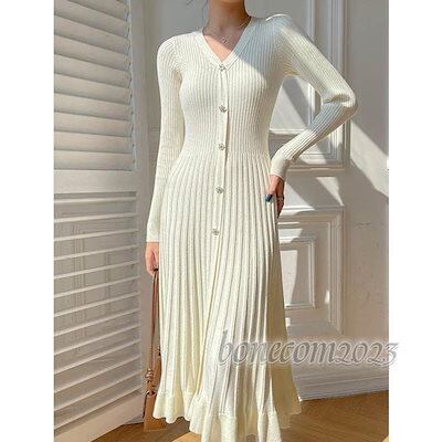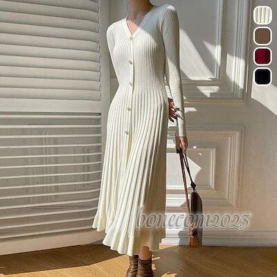 長袖 セーター 羽織 無地 おしゃれ ニット 冬 シンプル トップス 秋 ワンピース ゆるニット オフィス ゆったり ニットワンピース ロング レディース 春