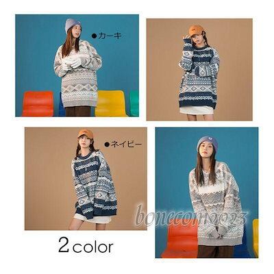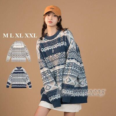 あったか ニットカーパー 長袖 ニット 秋 ペアルック レトロ 和風 ラウンドネック 厚 幾何柄 かっこい カーパー セーター レディース 丸首 メンズ 冬