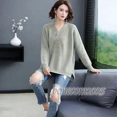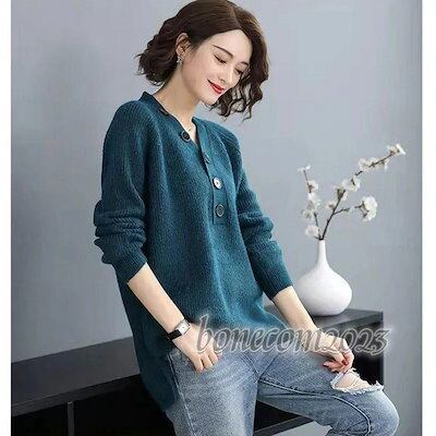 無地 代 大人 セーター 秋冬 ニット レディースニット ネック トップス セーター おしゃれ 長袖 あったか 大きいサイズ ゆったり 韓国風